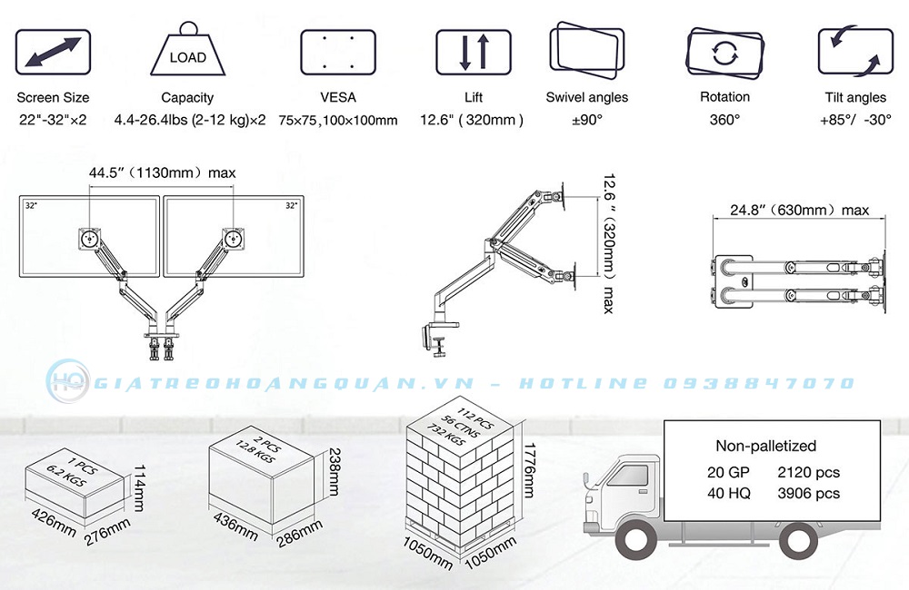 Giao hàng và lắp đặt nhanh, gọn gàng, lắp đẹp, treo hai màn máy tính rất tiện cho các góc ngồi
