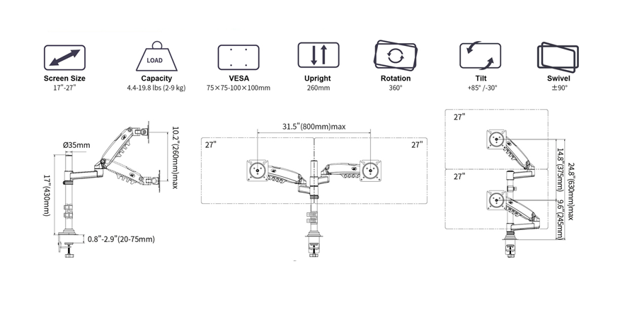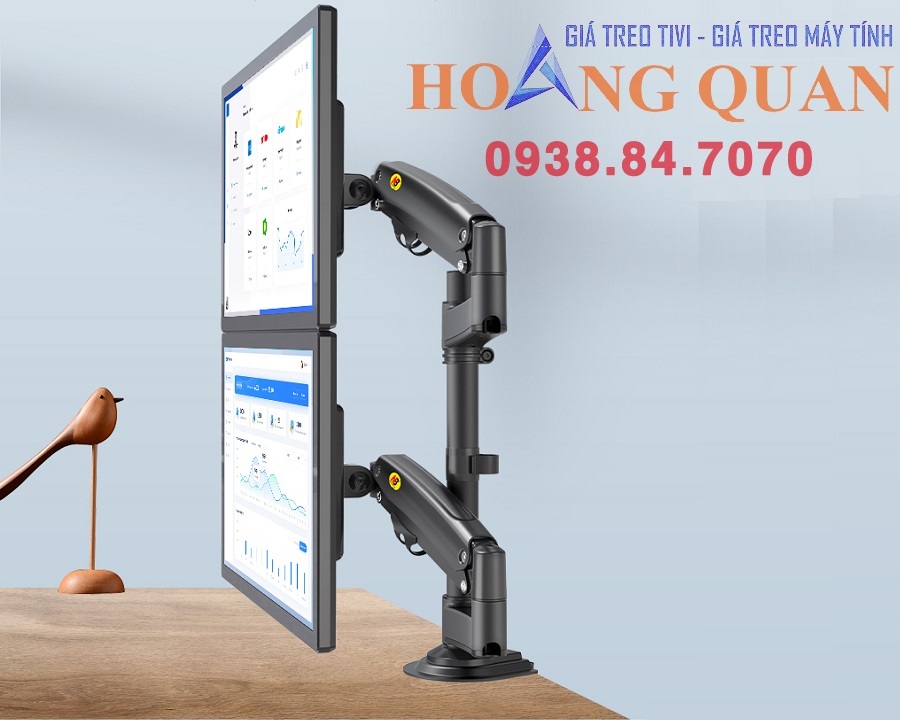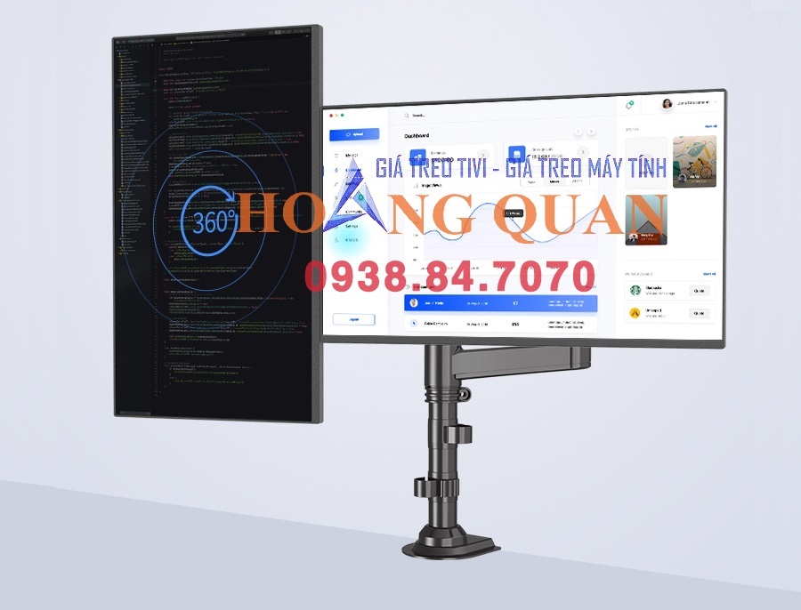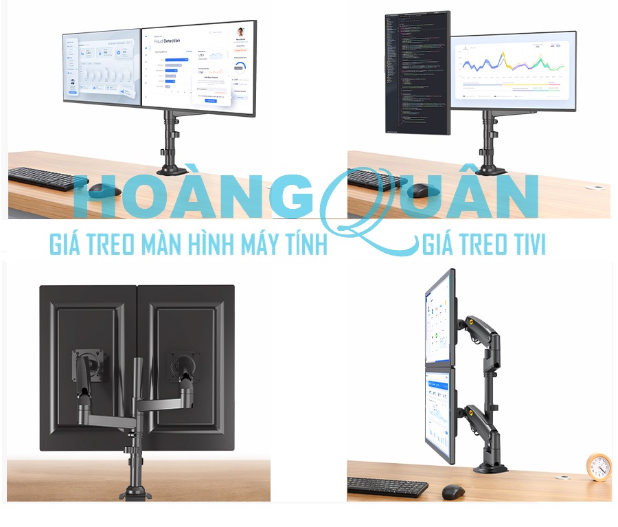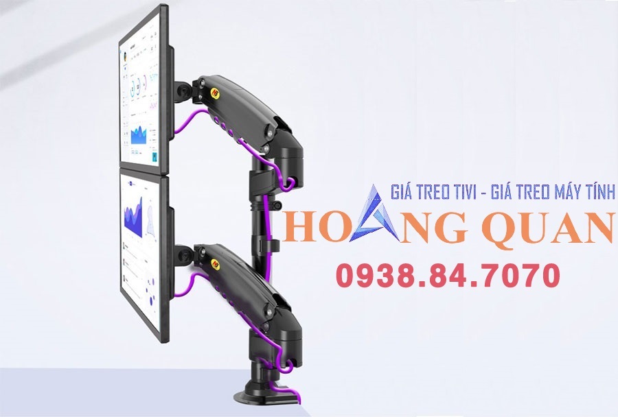 + Dùng treo 2 màn hình vi tính kích thước từ 17 đến 27 inch gắn bàn màu đen