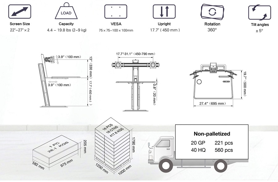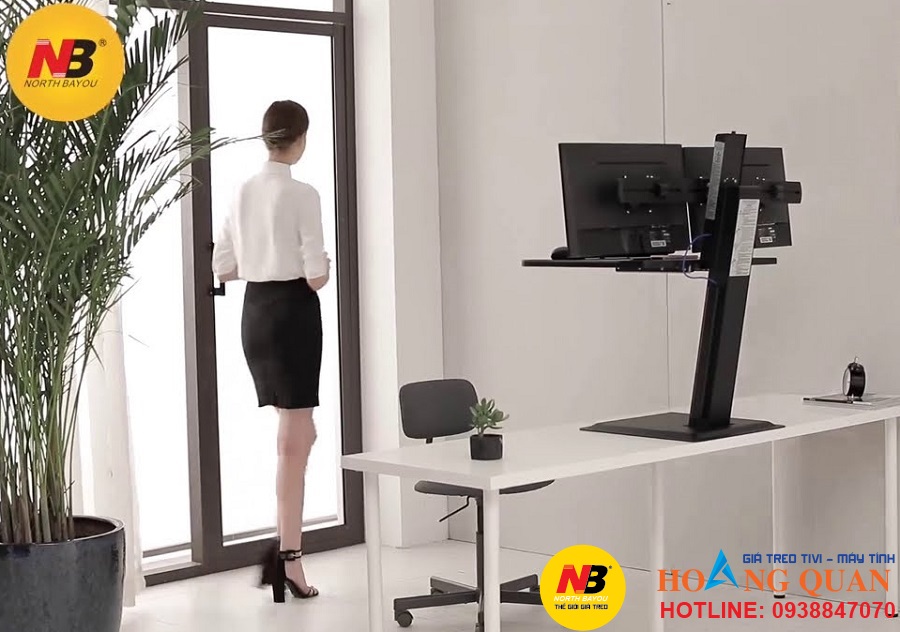 - Giá đỡ 2 màn hình máy tính để bàn hỗ trợ bàn phím NB S100 dùng gắn 2 màn hình từ 22 đến 27 inch có kèm mâm để bàn phím tiện dụng khi chúng ta làm việc kết hợp giữa ngồi và đứng. NB S100 được thiết kế rất tinh tế, tải trọng màn hình từ 2-9 Kg.