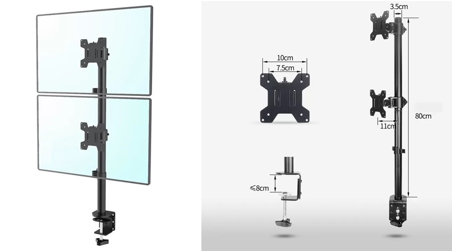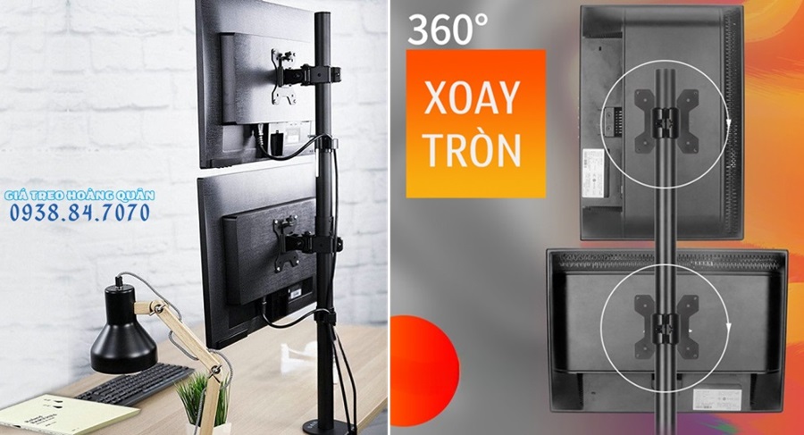 Giá treo hai màn hình kẹp bàn M063 xếp thành màn trên / dưới. Tay treo 2 màn hình tương thích màn hình 17 – 27 inch. Sản phẩm có thể kẹp vào thành bàn dễ dàng. Lắp đặt được với các loại màn hình máy tính giúp tiết kiệm diện tích mặt bàn làm việc.