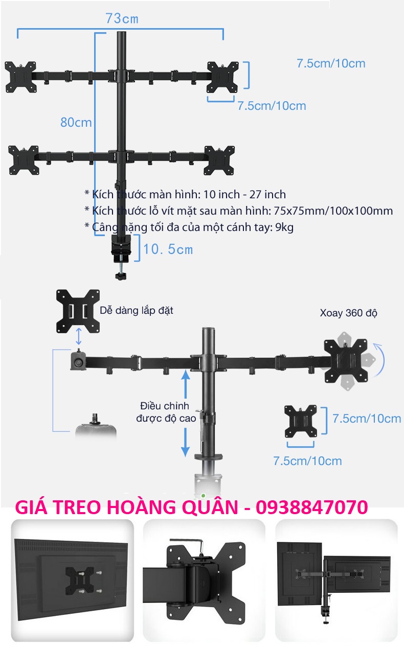 - Giá treo 4 màn hình máy tính là loại giá đỡ tiện dụng tiết kiệm không gian cho những góc làm việc có diện tích khiêm tốn. Chiếc giá đỡ này sẽ khiến góc làm việc của bạn trở nên gọn gàng và chuyên nghiệp dù phải sử dụng đến 4 màn hình