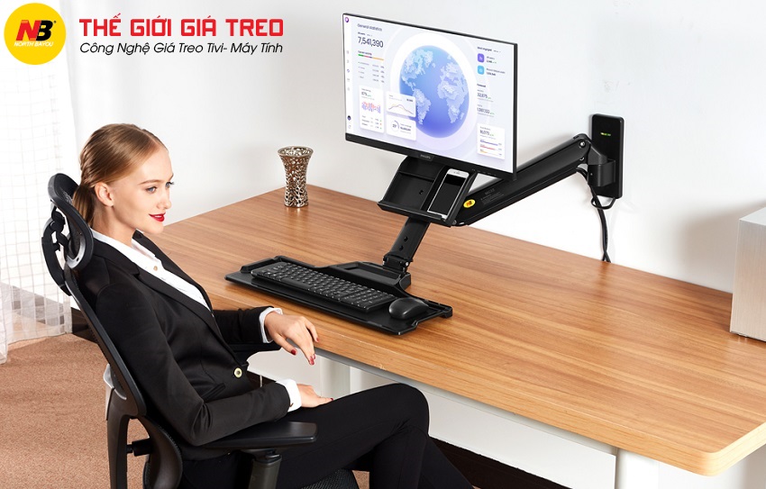 - Giá đỡ màn hình máy tính gắn tường kèm giá đỡ bàn phím NB MB32 là giá treo màn hình dành cho màn hình với tải trọng lên đến 3-13 kg. NB MB32 tâm lỗ bắt vít 75x75 đến 100x100mm. Sản phẩm hoàn thiện tốt với thép SPCC, hợp kim nhôm và sơn tĩnh điện, xi lanh khí nén.