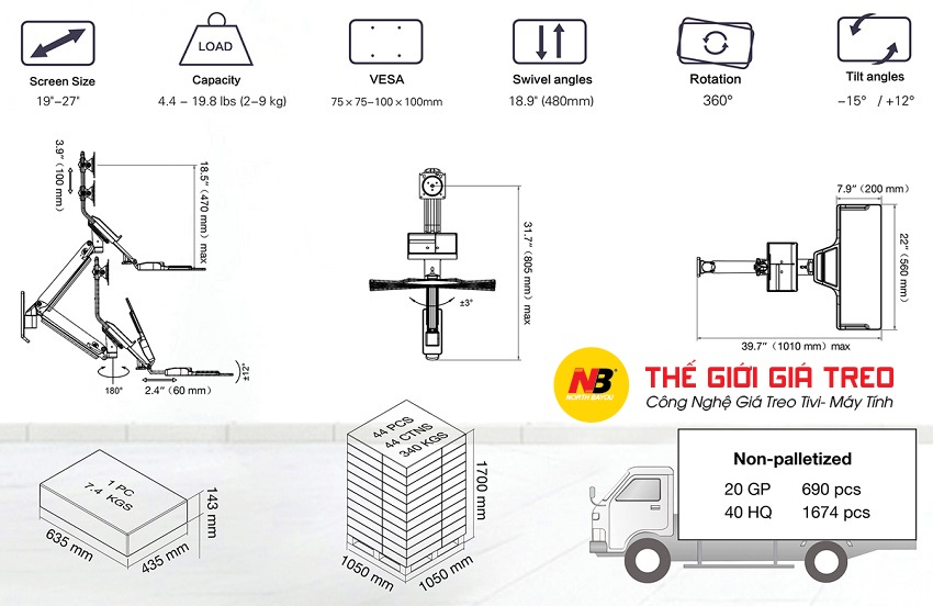 Video chi tiết giá treo màn hình máy tính NB-MB32