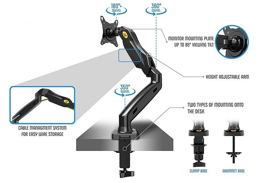 Giá treo màn hình máy tính NB F80 là giá đỡ màn hình máy tính để bàn đa năng, NB F80 được tích hợp sẵn khí nén bền hoặc bằng khí gas xi lanh để giúp bạn di chuyển màn hình theo bất kỳ hướng nào và chiều cao theo mong muốn của bạn.