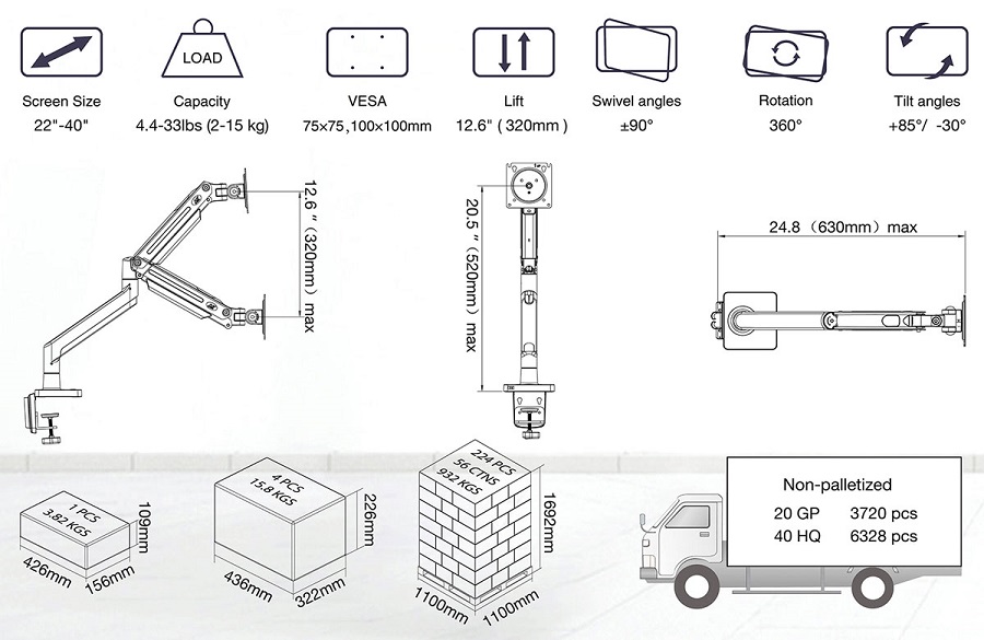 Với thiết kế cứng cáp, arm màn hình NB G45 có tải trọng tối đa lên đến 15kg và hỗ trợ kích thước màn hình từ 22 inch đến 40 inch. Cùng với đó trọng lượng của giá đỡ cũng chỉ rơi vào khoảng 6.6kg, thuận tiện trong việc di chuyển.