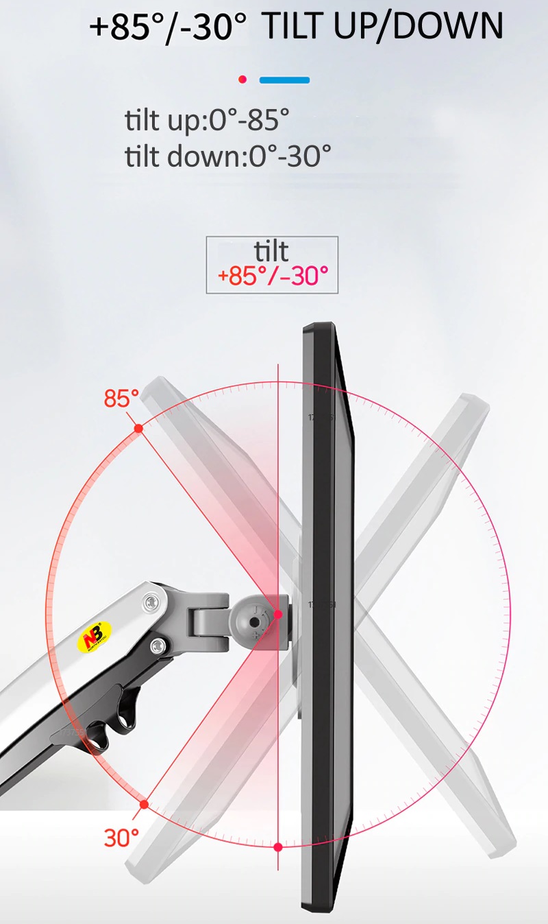 - Giá treo màn hình máy tính kẹp bàn NB-H100 là sản phẩm mới nhất năm 2020 của hãng NorthBayou chuyên dành cho tất cả các loại màn hình máy tính có kích thước từ 22 đến 35inch, NB-H100 được thiết kế bằng nhôm đúc nguyên khối và được trang bị 1 piston thủy lực phía trong có sức nâng đỡ lên tới 12kg.