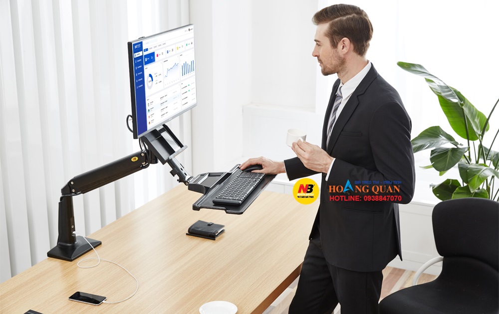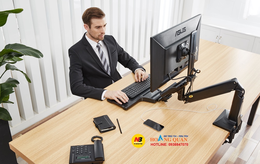 Chúng tôi xin giới thiệu đến quý khách hàng giá treo màn hình máy tính kẹp bàn NB35 kết hợp với mâm giá đỡ bàn phím, chuột phía dưới đa năng, tiện lợi được phân phối tại Hoàng Quân năm 2021.