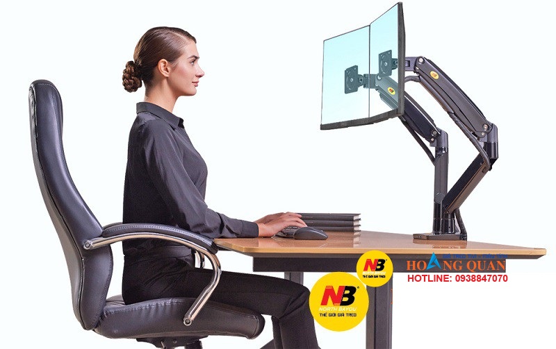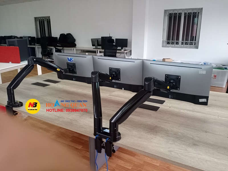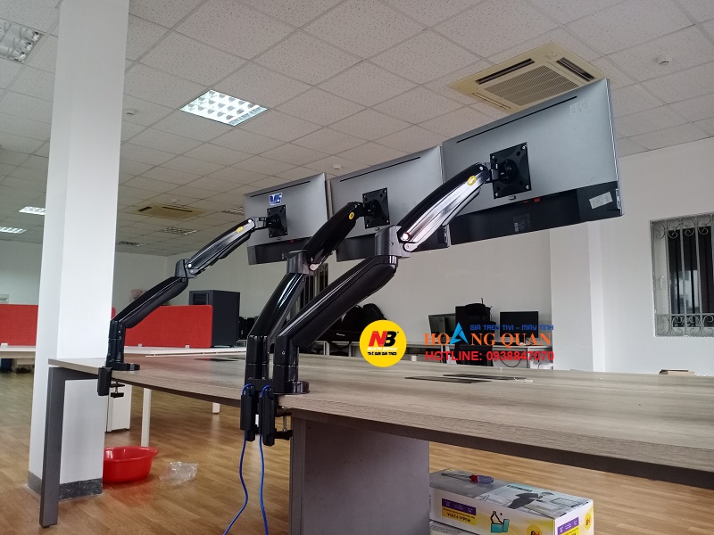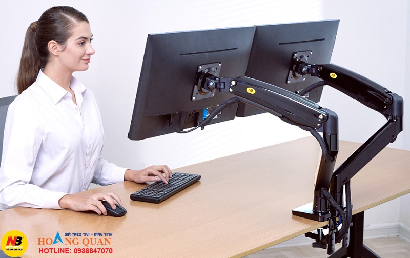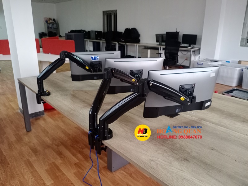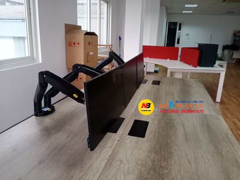 Hình Ảnh Lắp Đặt Thực Tế Arm 2 Màn Hình Máy Tính NB-F195A