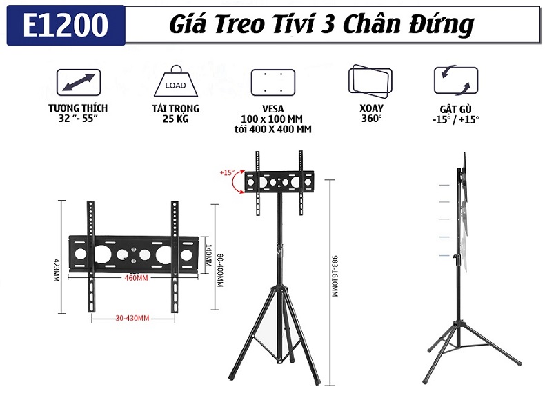 Giá treo tivi 3 chân đứng dạng cọc Egrotek e1200 là sản phẩm mới đến từ thương hiệu Ergotek với thiết kế chắt chắn, đảm bảo an toàn tuyệt đối trong suốt quá trình sử dụng cho mợi loại màn tivi với kích thước từ 32 - 55 inch.