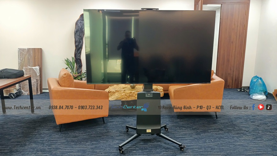 + Độ cao điều chỉnh TV: 1m15 – 1m65. Nâng hạ không dây bằng Remote.