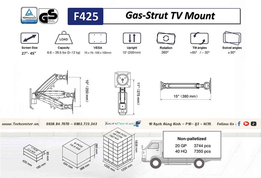 Giá treo màn hình tivi gắn tường NB-F425 là giá treo màn hình dành cho các loại tivi có kích thước từ 27 đến 45 inch với tải trọng lên đến 12 kg. NB F425 tâm lỗ bắt vít 75x75 đến 200x200mm. Sản phẩm hoàn thiện tốt với thép SPCC, hợp kim nhôm và sơn tĩnh điện, xi lanh khí nén.