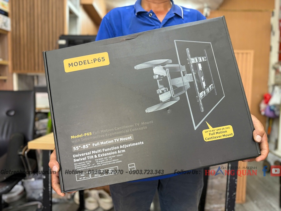 Tải trọng cao: Với khả năng chịu tải lên đến 68,5 kg, P65 là lựa chọn lý tưởng cho các dòng Tivi 85 inch siêu mỏng, đảm bảo sự an toàn tuyệt đối trong suốt quá trình sử dụng.