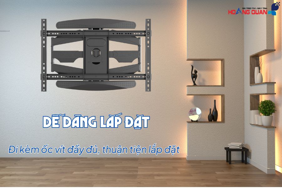 Ép sát tường: Khi không cần xoay, Tivi có thể được ép sát vào tường, đóng vai trò như một giá treo Tivi cố định, tiết kiệm không gian tối đa.
