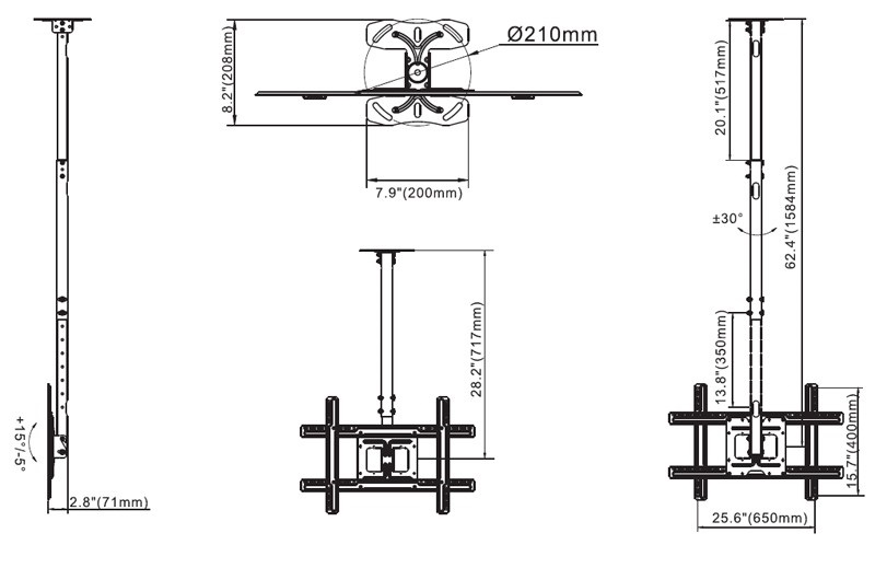 Giá treo tivi thả ngược trần NBT560-15 là 1 phụ kiện dùng để lắp treo tivi áp lên trần, NBT560-15 có thể điều chỉnh độ cao, thích hợp cho nhiều vị trí thả trần, gắn được mọi hãng tivi hiện nay trên thị trường từ màn hình phẳng đến màn hình cong.