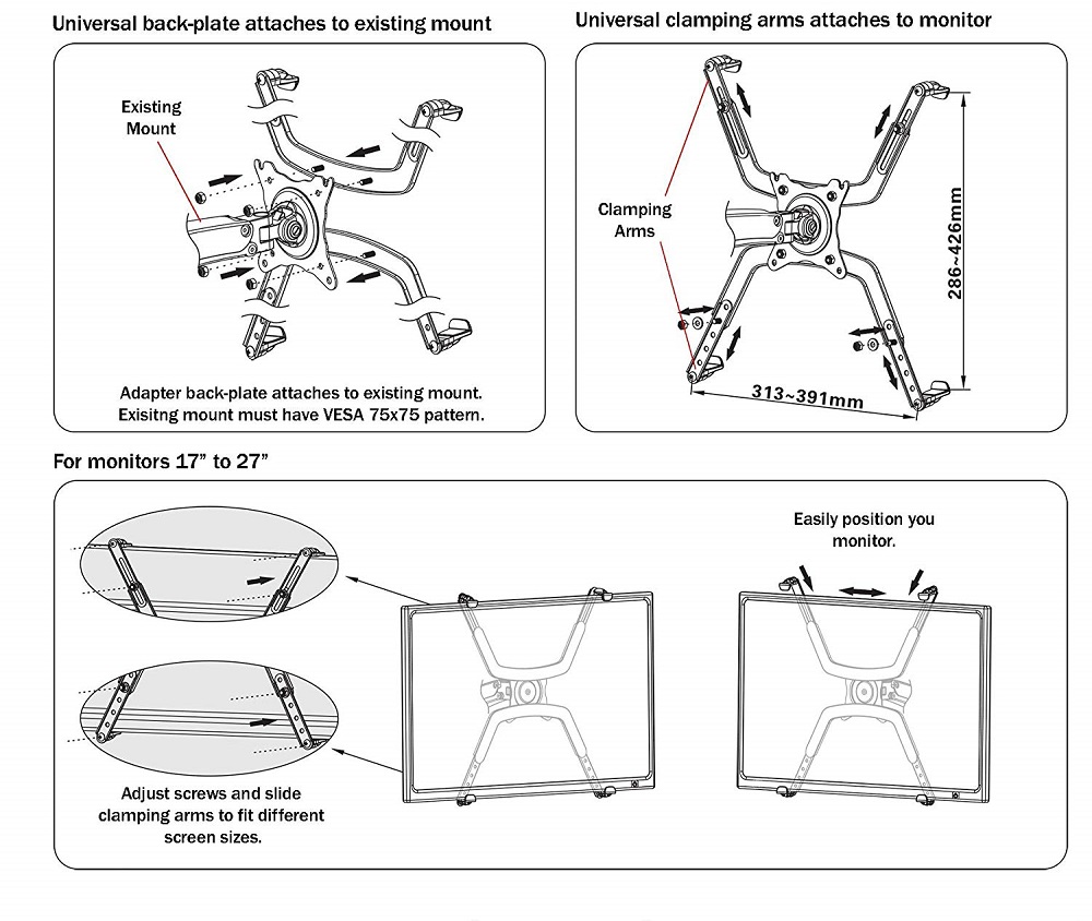 + Phù hợp với màn hình từ 17-27 inch và có độ dày nhỏ hơn 7,5cm