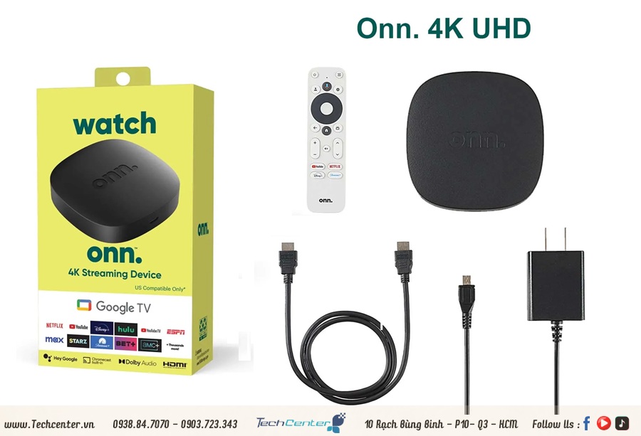 Thiết bị ONN Android TV Box là một sản phẩm chính hãng từ thương hiệu onn. (thương hiệu con chuyên ngành hàng điện tử của Walmart) chạy hệ điều hành Google TV dựa trên nền tảng Android TV hỗ trợ tiếng Việt, tìm kiếm giọng nói và các ứng dụng trên CH Play của Android TV với các ứng dụng phổ biến tại Việt Nam như FPT Play, VTV Go, Netflix v.v….