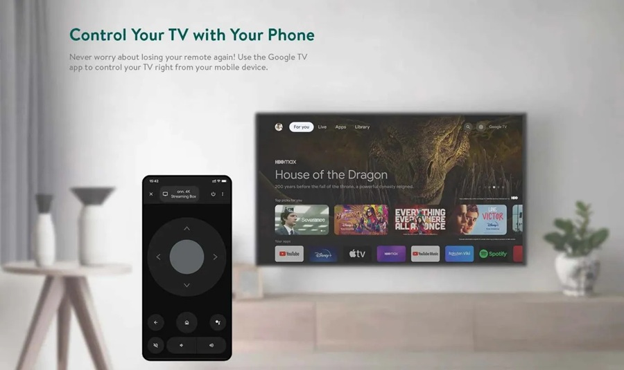 Thiết bị giải trí onn. 4K Google TV hỗ trợ đa dạng nền tảng giải trí như Netflix, YouTube, Google Play,… với nhiều nội dung chất lượng cùng hơn 700,000 bộ phim và chương trình truyền hình độc đáo đang đợi bạn khám phá.